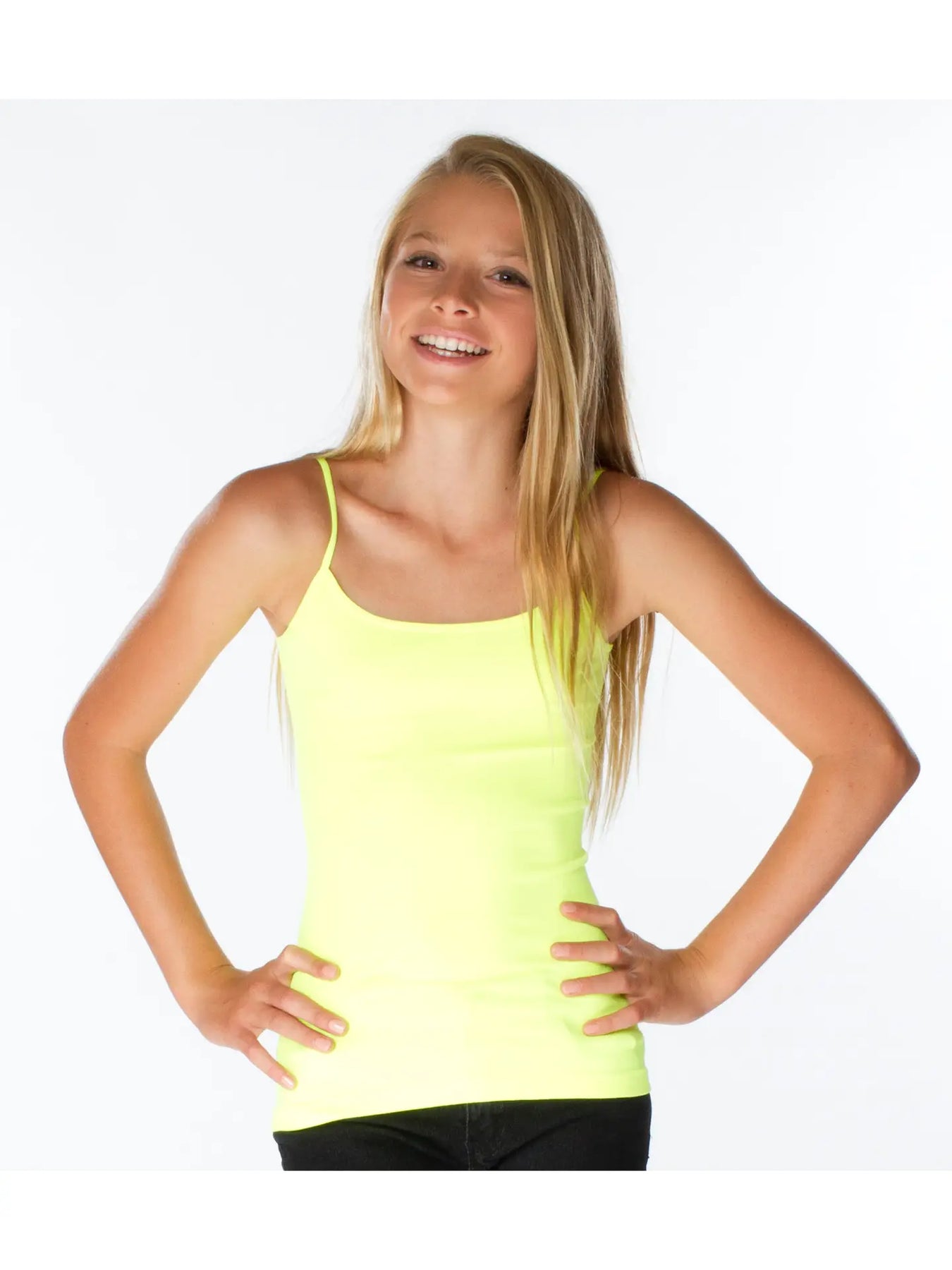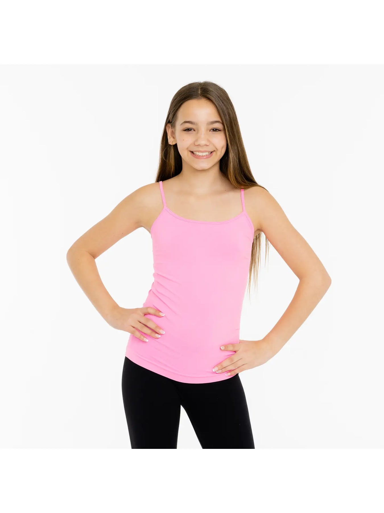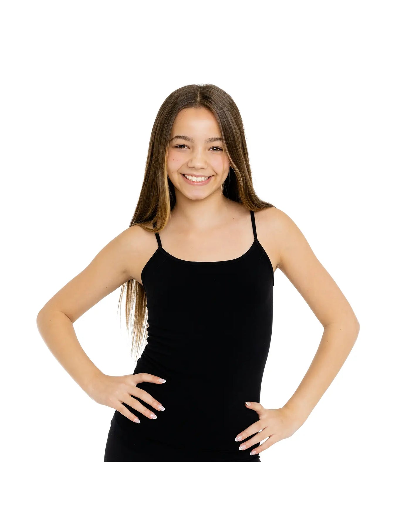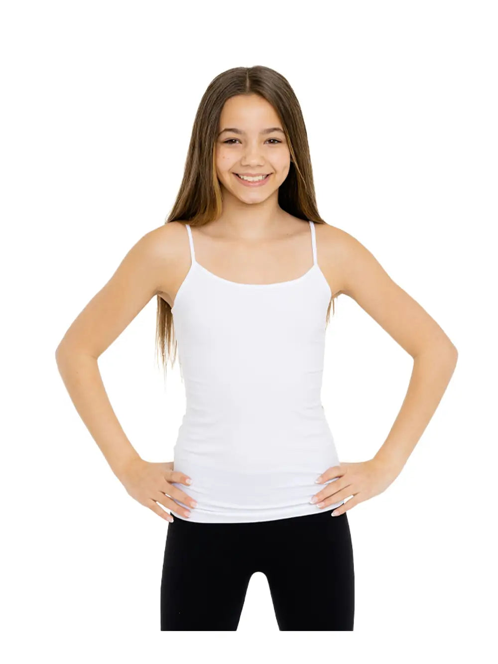 Our spaghetti strap camisole is perfect worn alone on warmer days or can be layered under tank tops, t-shirts and sweaters. Fits girls size 10-14