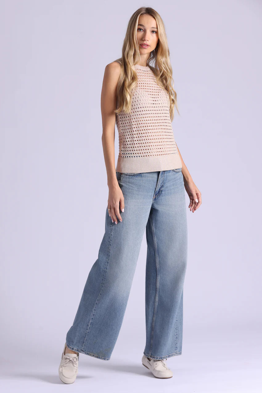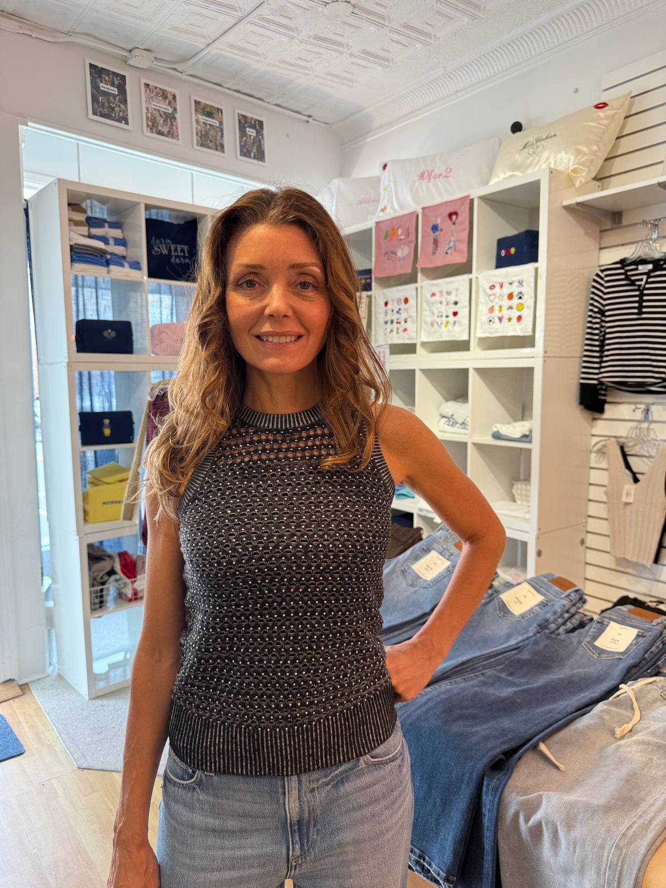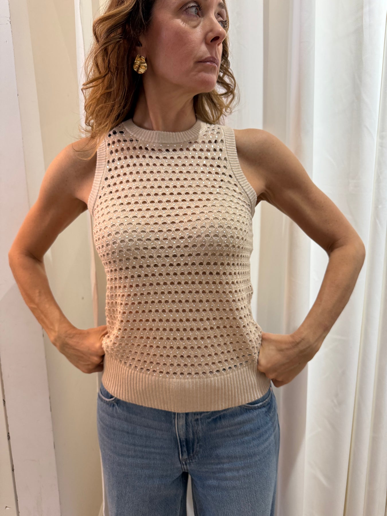 Not your basic tank. This cotton-cashmere crew is plaited for rich texture, finished with mesh detailing, and edged with studs for just the right amount of attitude. Soft yet structured, it layers like a dream but has enough edge to stand on its own.