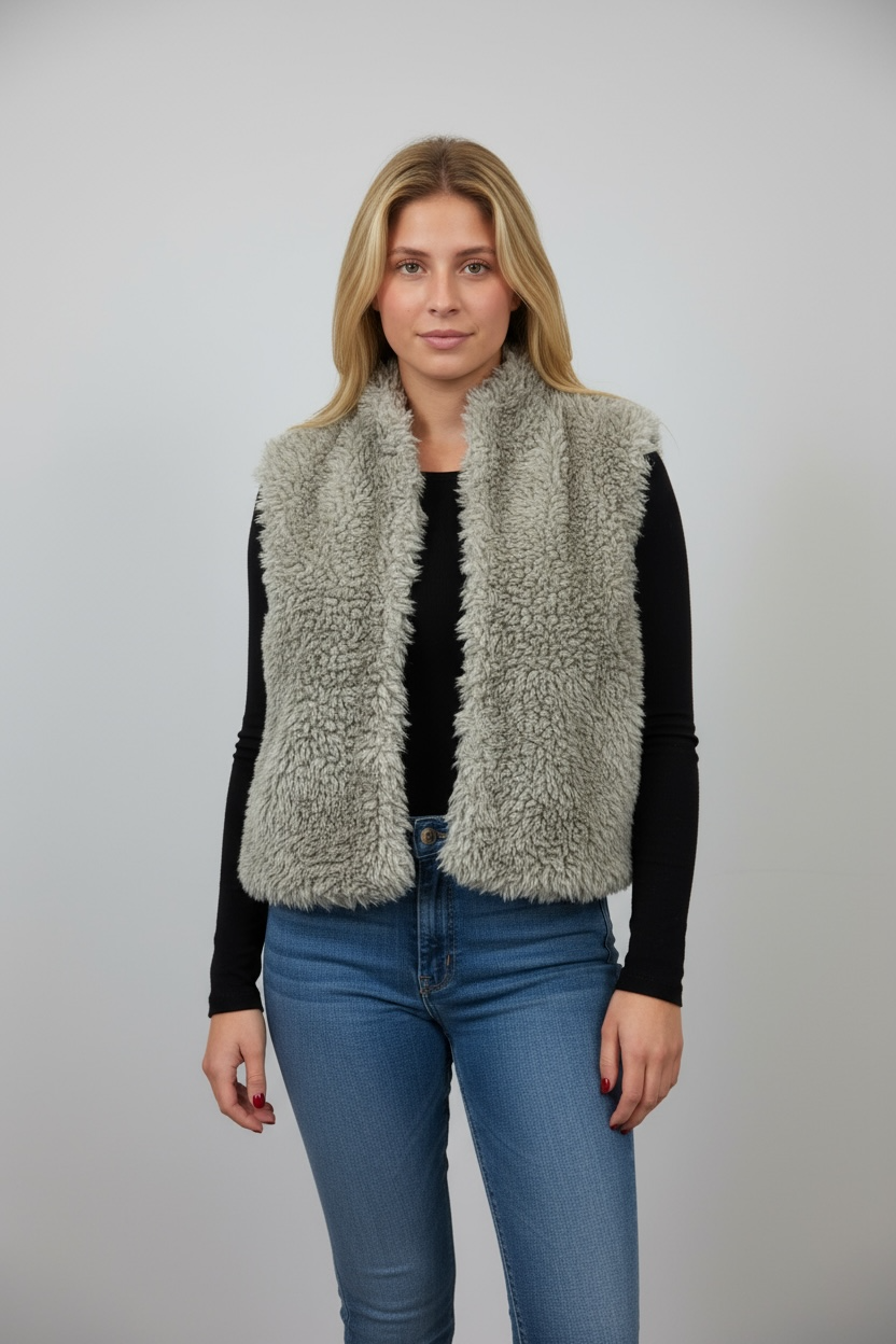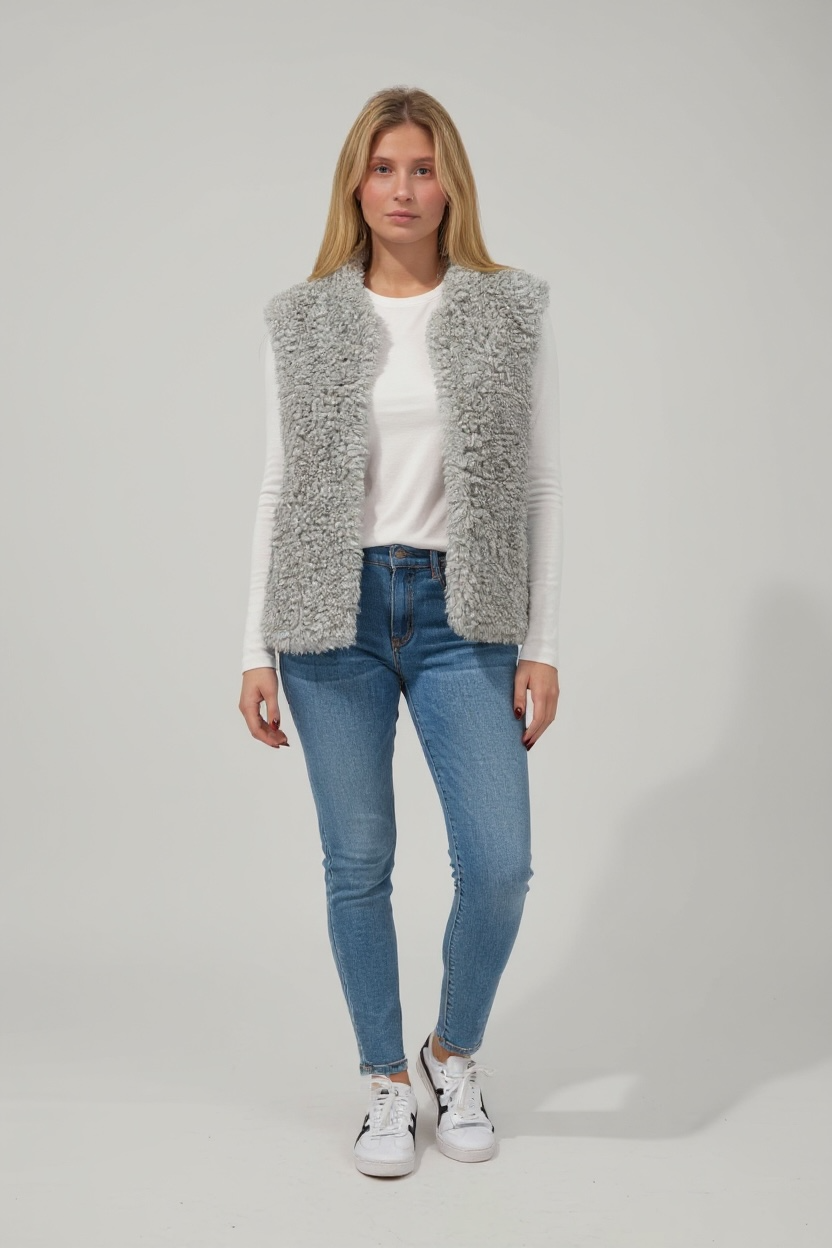 This waistcoat is a stunning statement piece, crafted to bring a touch of luxurious texture to your wardrobe. The low shoulder line creates a relaxed silhouette and the side slit pockets offer a practical element.