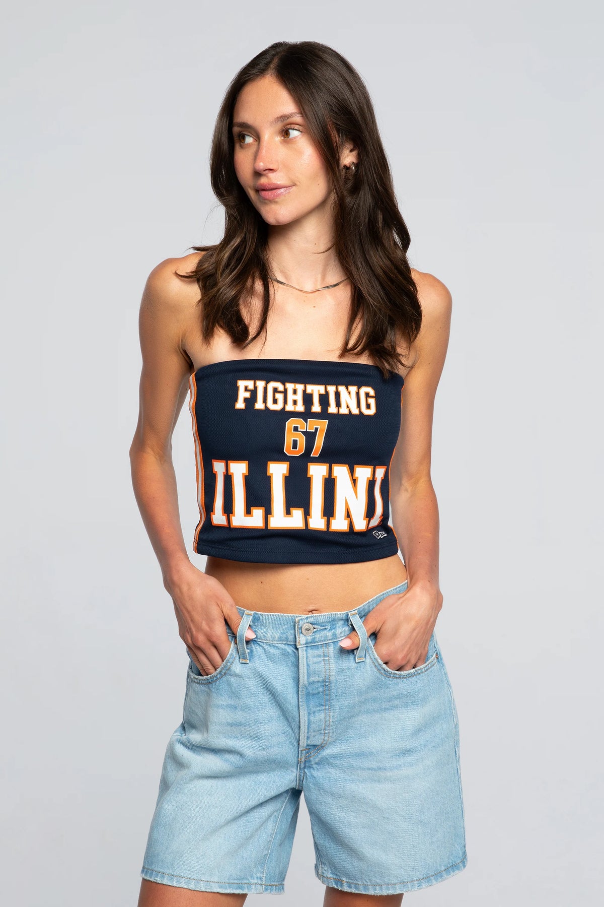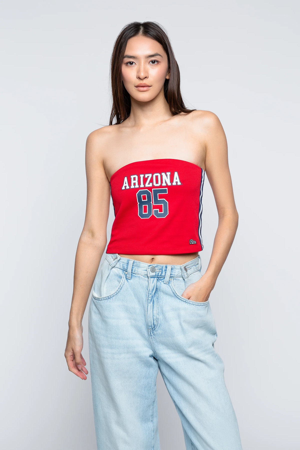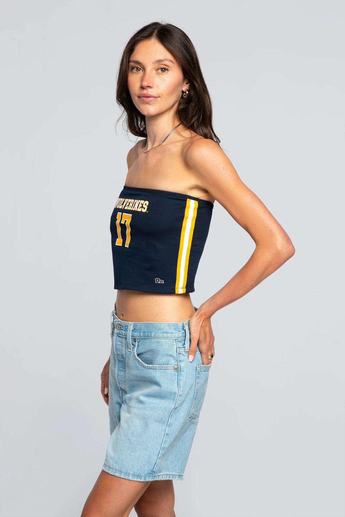 Game day, but make it cute. This jersey inspired tube top features bold racing stripes down the sides and your team front and center. Made with breathable athletic mesh so you can cheer louder!