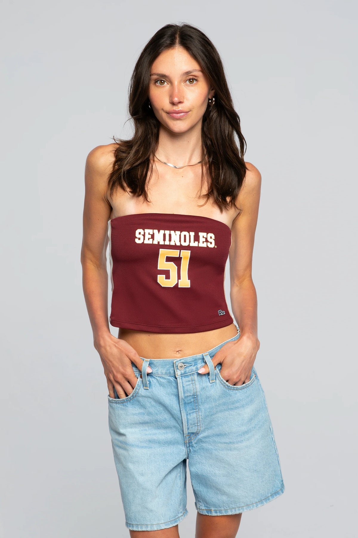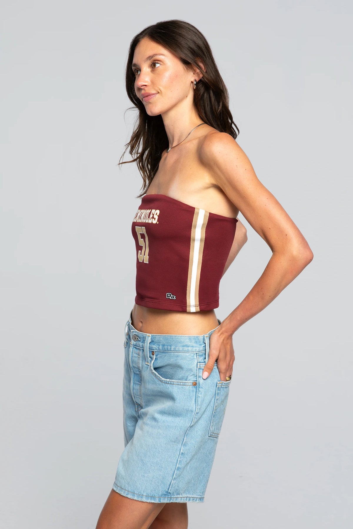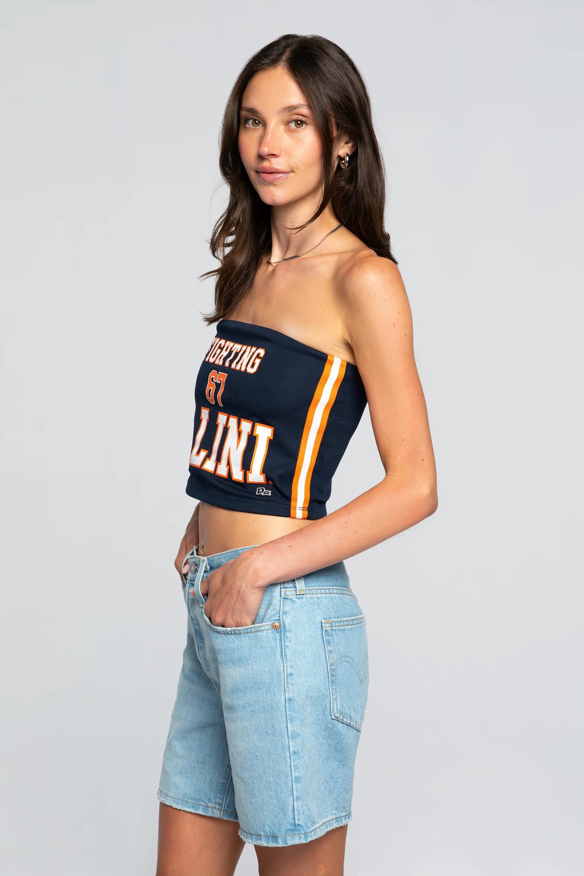 Game day, but make it cute. This jersey inspired tube top features bold racing stripes down the sides and your team front and center. Made with breathable athletic mesh so you can cheer louder!
